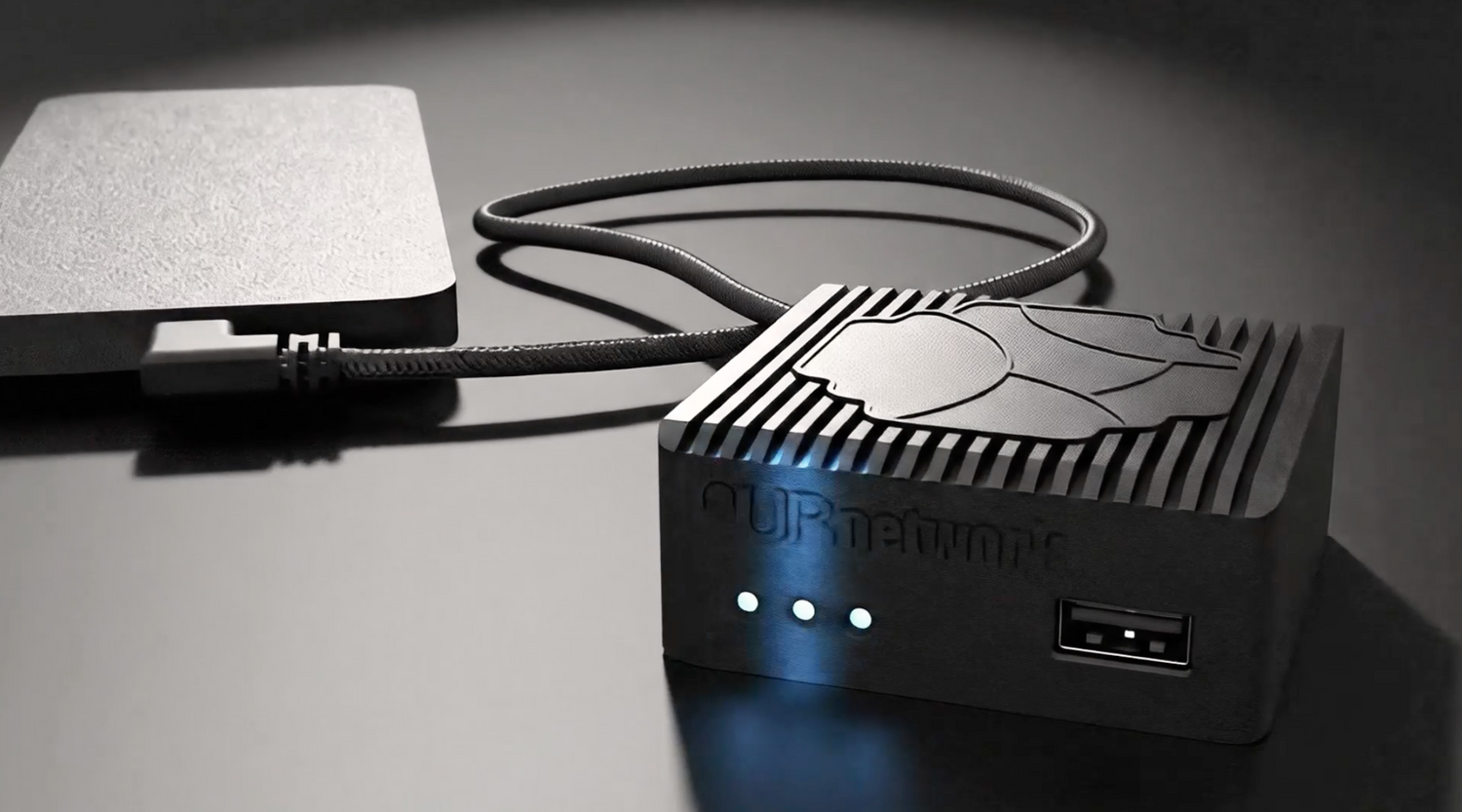 A palm-size edge node that connect to your phone, router, and gaming console and connects you to URnetwork—a fast, private, peer-to-peer fabric built for the AI era.